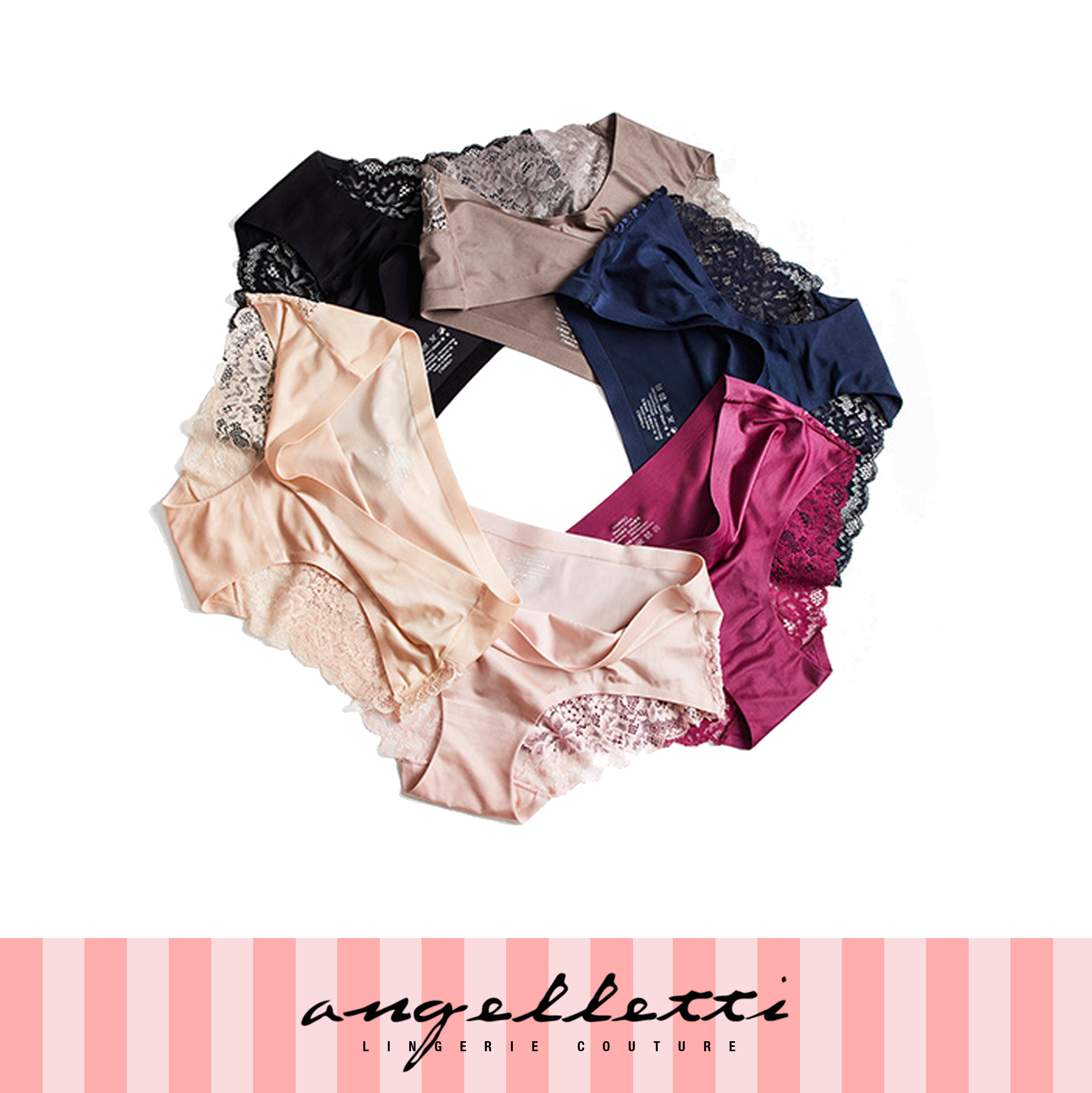 ANGELLETTI Pearlescent Lace Seamless Women Panties Black XL