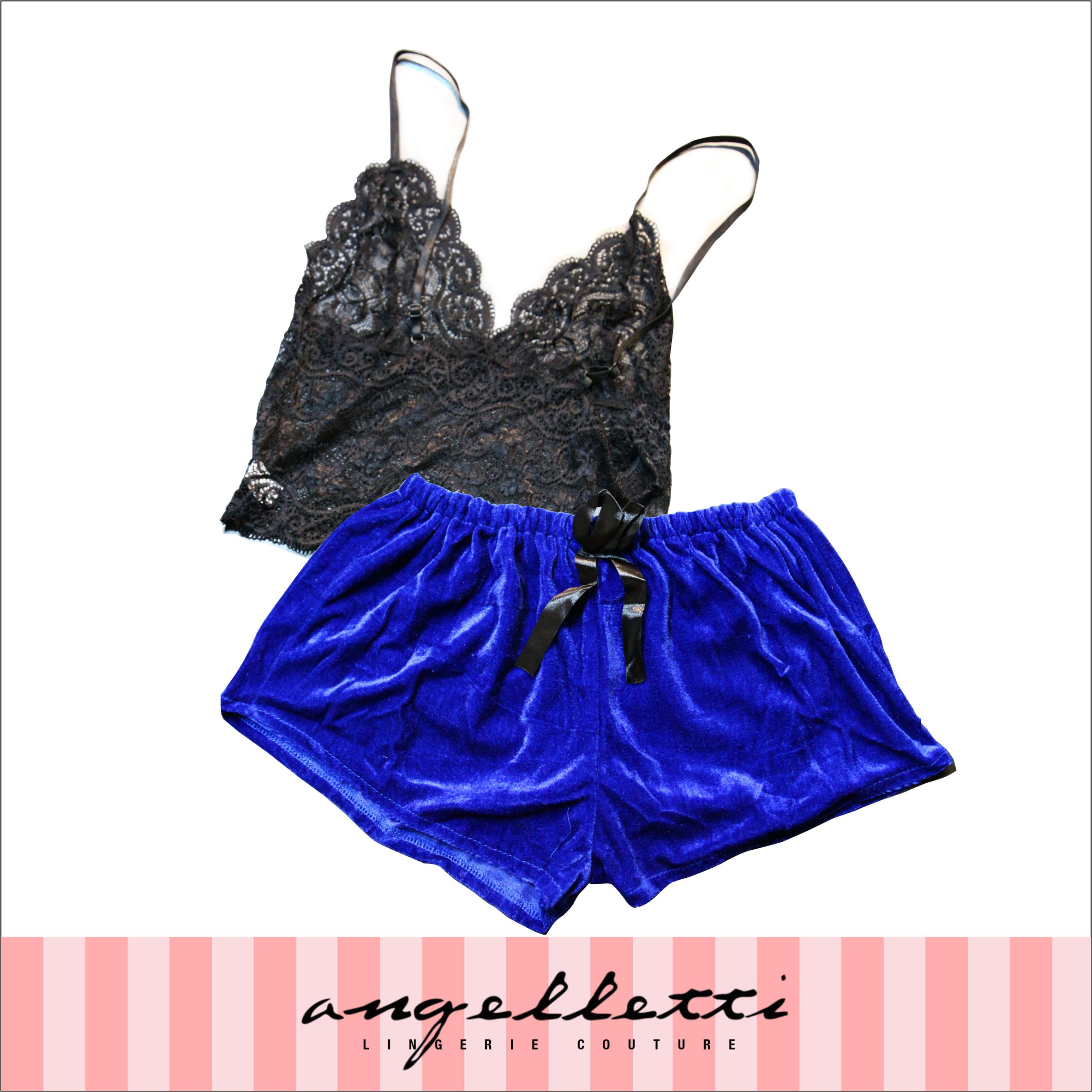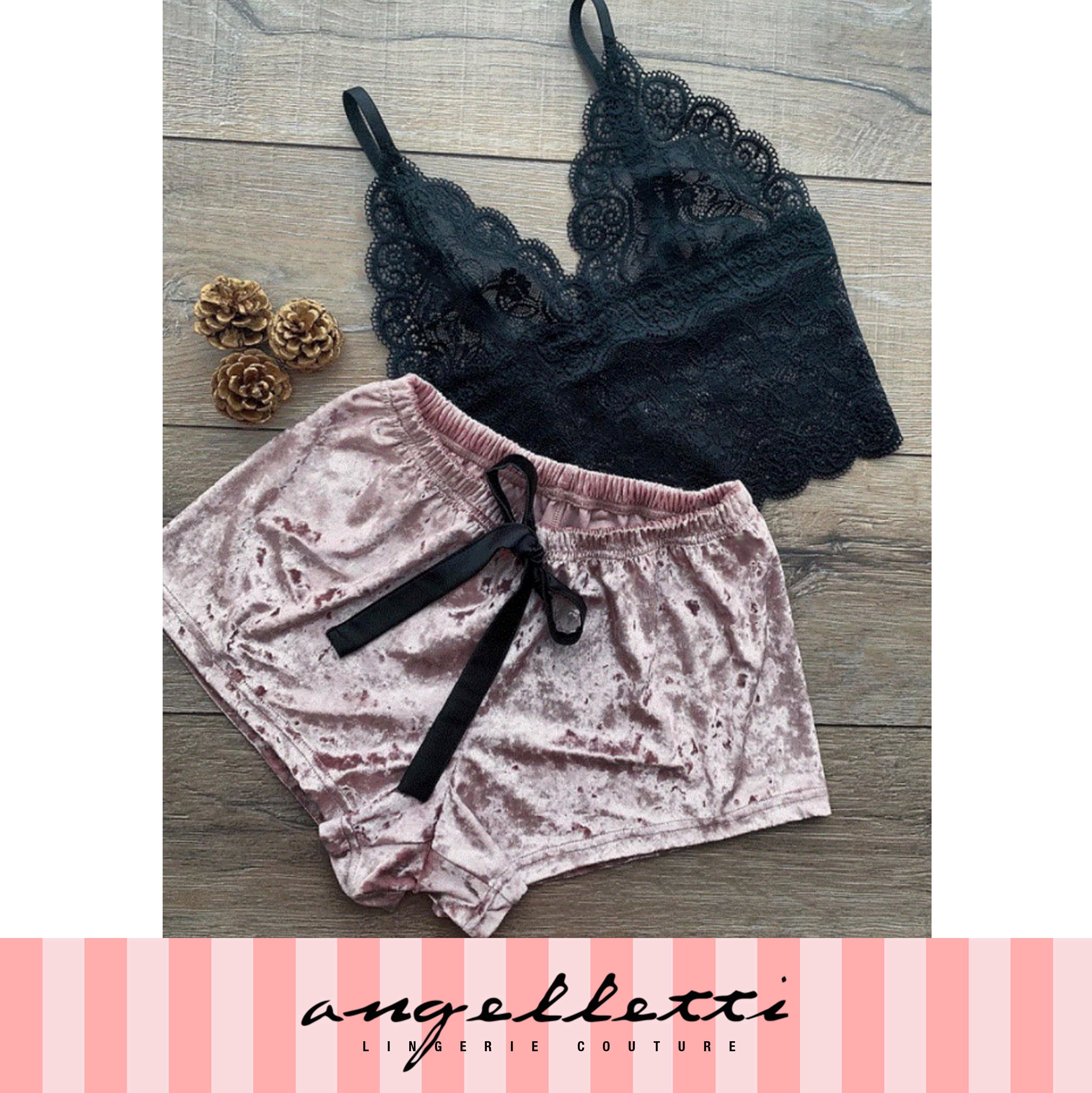 ANGELLETTI Floral Lace Bralette With Floral Print Shorts S Black