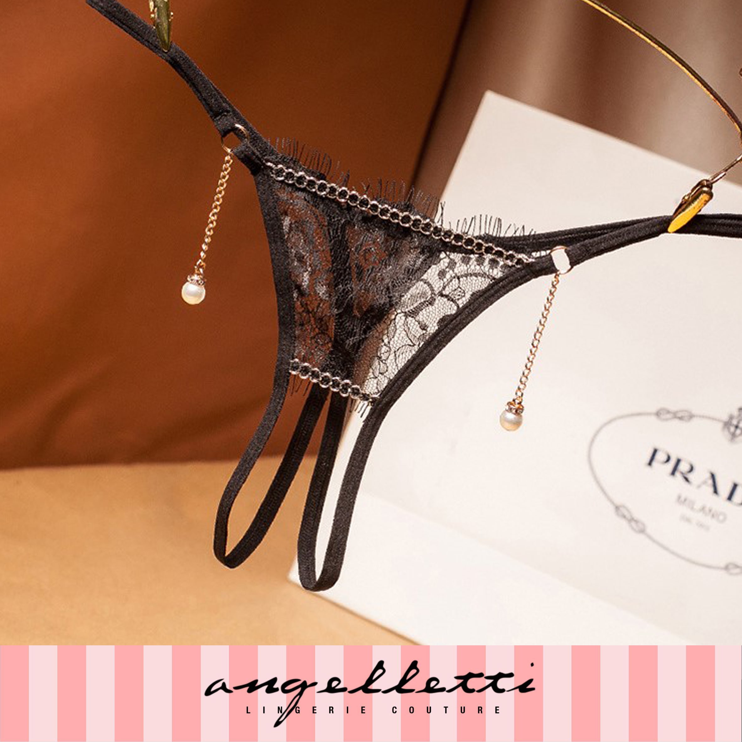 ANGELLETTI Lingerie Pearl Lace Thong Black