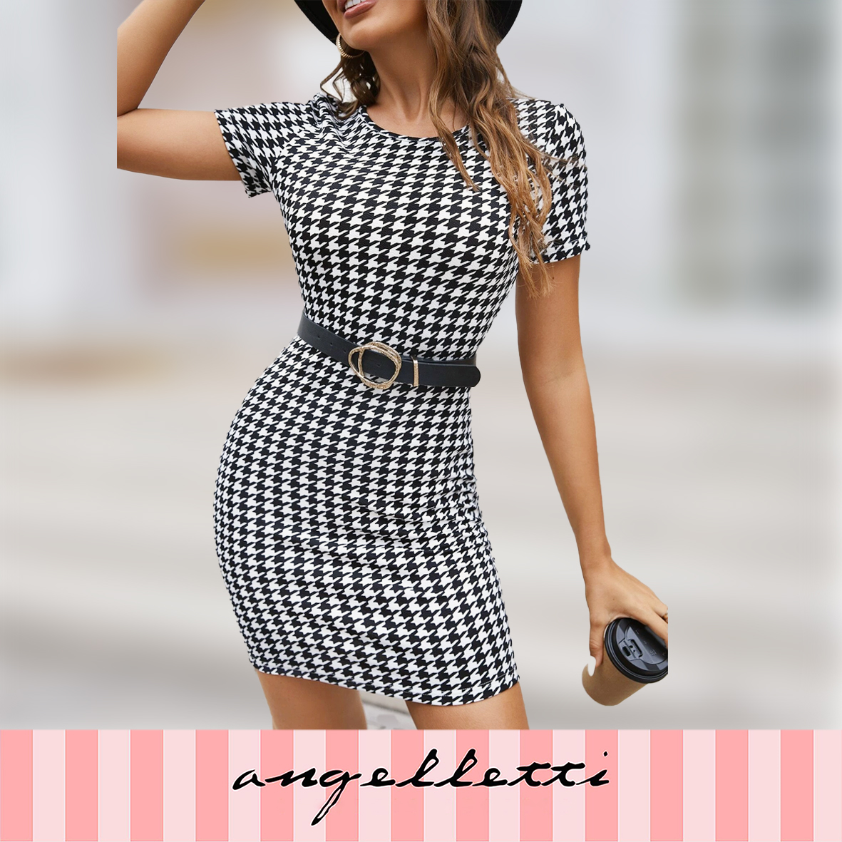 ANGELLETTI Houndstooth Print Filted Dress Without Belt S Black And White