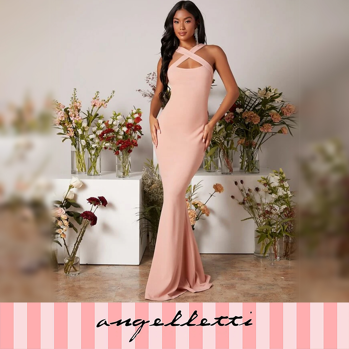 ANGELLETTI Belle Crisscross Front Mermaid Hem Bridesmaid Dress S Baby Pink