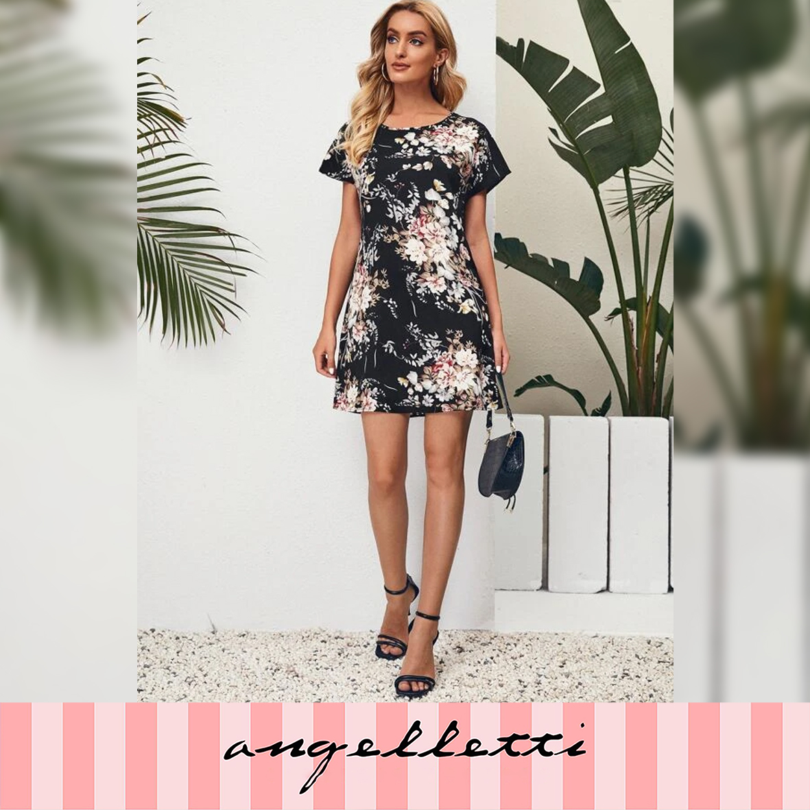 ANGELLETTI EMERY ROSE Batwing Sleeve Floral Print Tunic Dress S Multicolor