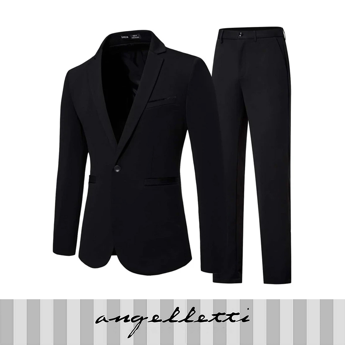 ANGELLETTI Men Single Button Blazer & Suit Pants Set M Black
