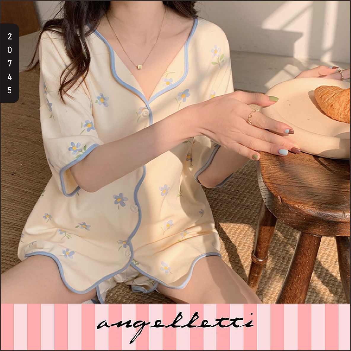 ANGELLETTI Women Sleepwear Korean Style Short Sleeve XL Orange Flower Size