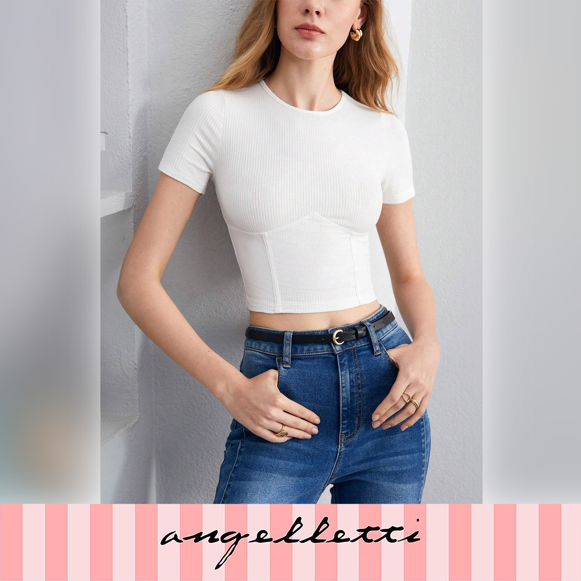 ANGELLETTI BIZwear Tight Hem Solid Crop Tee S White