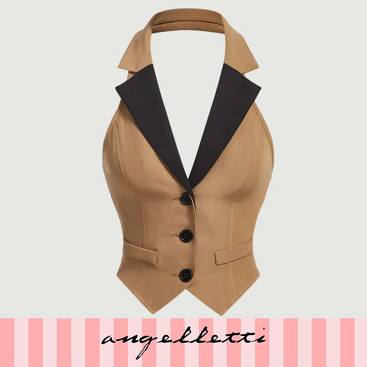 ANGELLETTI MOD Contrast Collar Button Front Vest Blazer S Brown