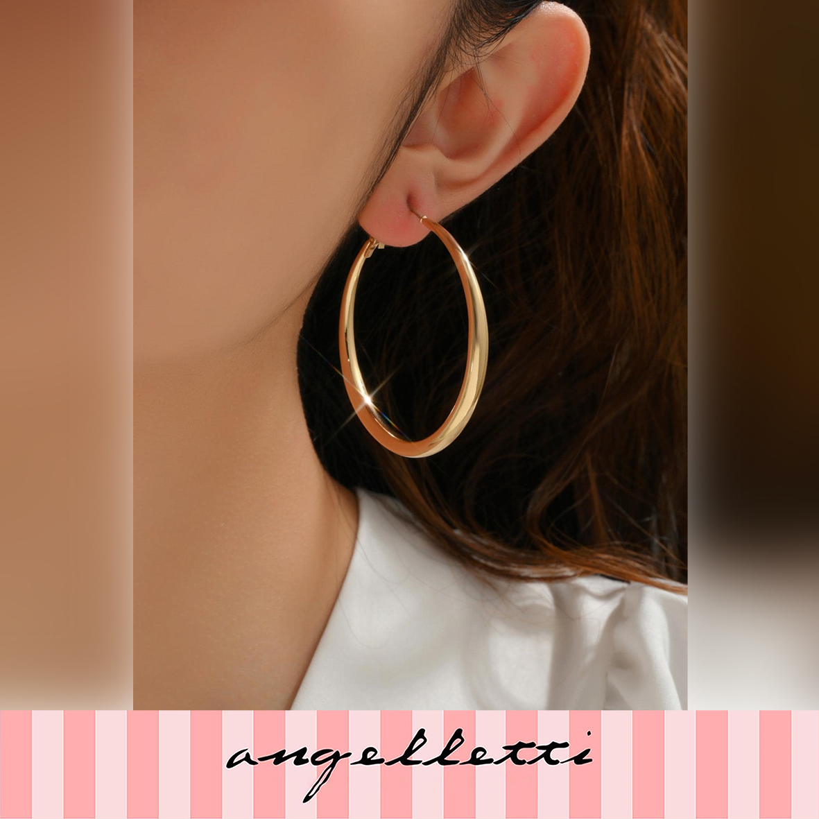 ANGELLETTI Minimalist Hoop Earrings Thick Yellow Gold