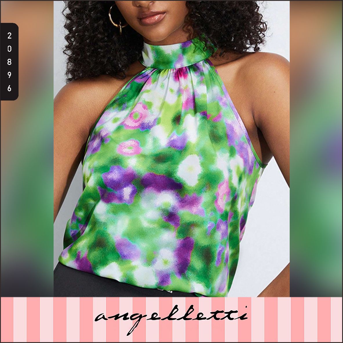 ANGELLETTI Tie Dye Halter Neck Keyhole Back Top S Multicolor