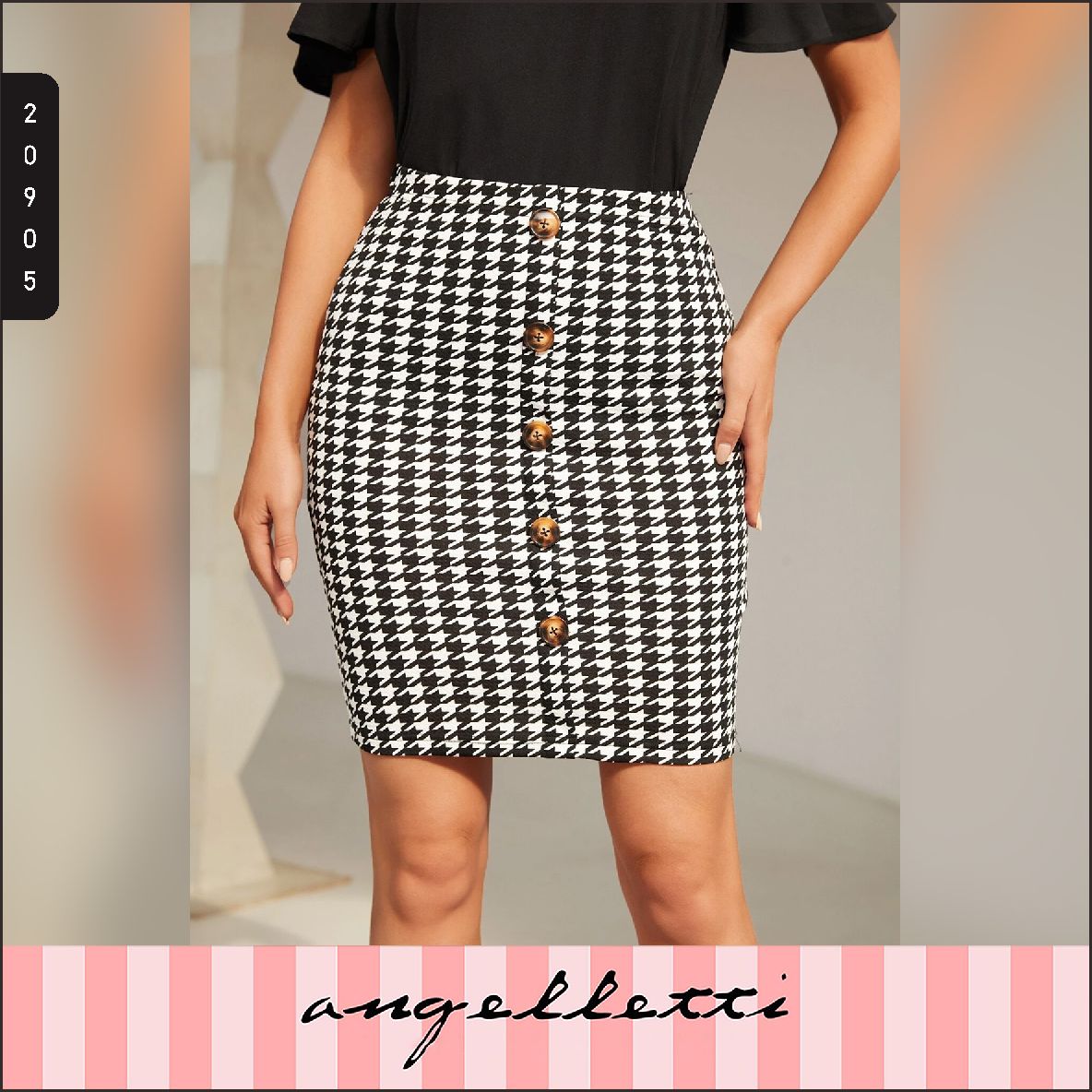 ANGELLETTI BIZwear Houndstooth Plaid Pencil Skirt S Dark Grey