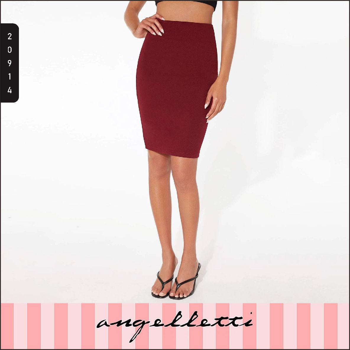 ANGELLETTI Solid Pencil Skirt S Mahony Maroon
