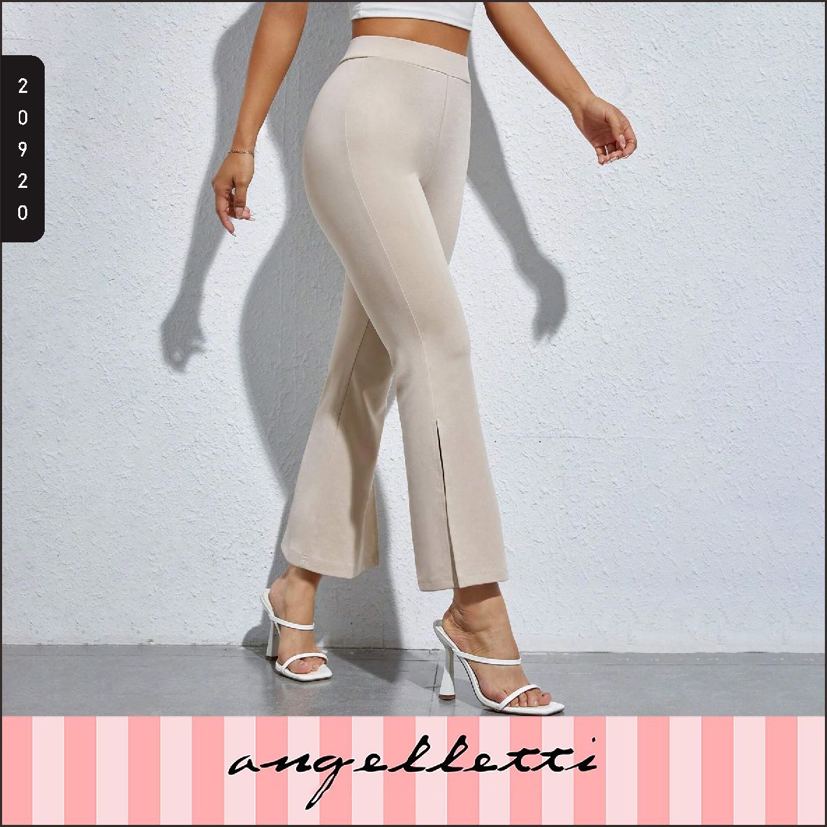 ANGELLETTI PETITE High Waist Split Hem Flare Leg Pants S Beige