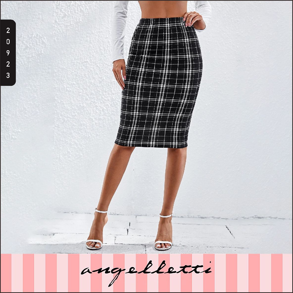 ANGELLETTI BIZwear Elastic Waist Plaid Pencil Skirt S Black And White