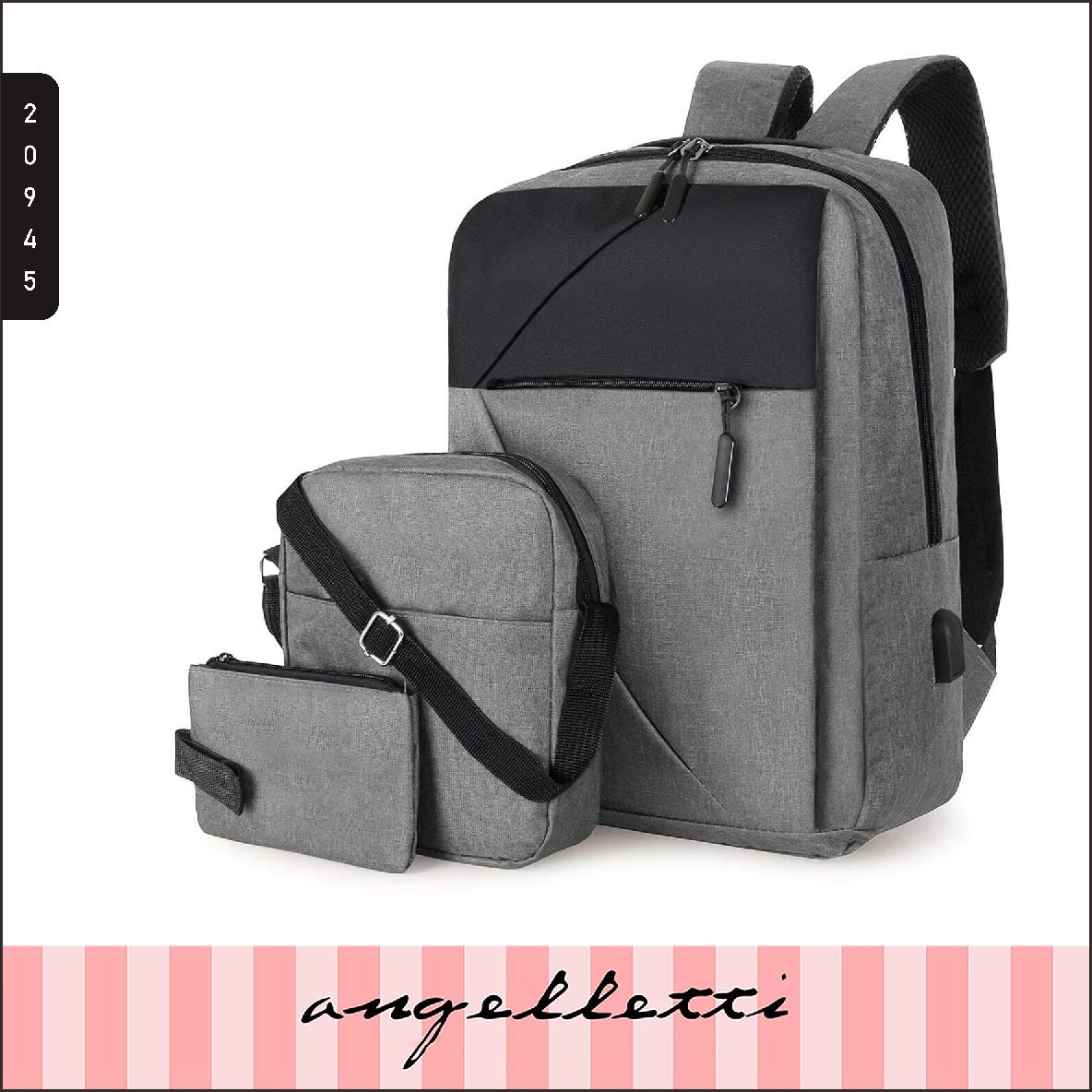ANGELLETTI 3pcs Men Two Tone USB Charging Port Laptop Backpack Set Multicolor