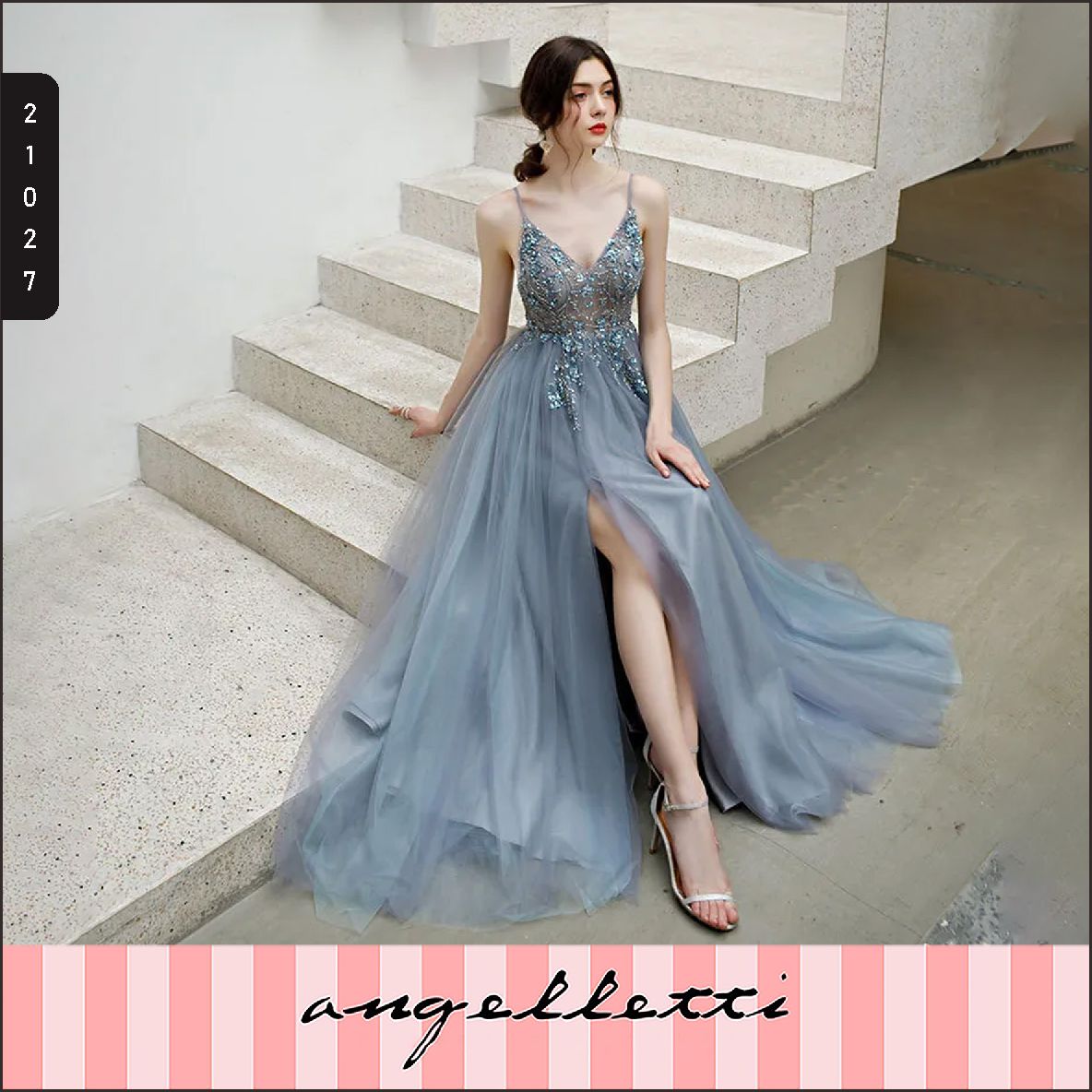 ANGELLETTI Luxury Formal Sequins Dress M Blue Grey