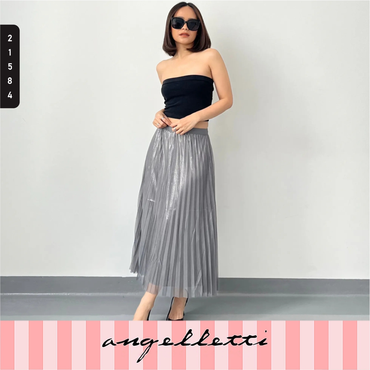 ANGELLETTI Daisy Pleated Glitter Tulle Skirt Nude All Size