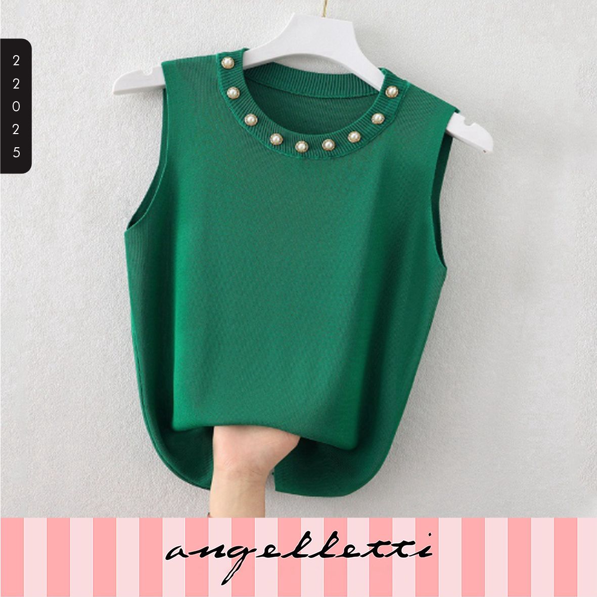 ANGELLETTI Korean Pearl Knit Sleeveless Black All Size